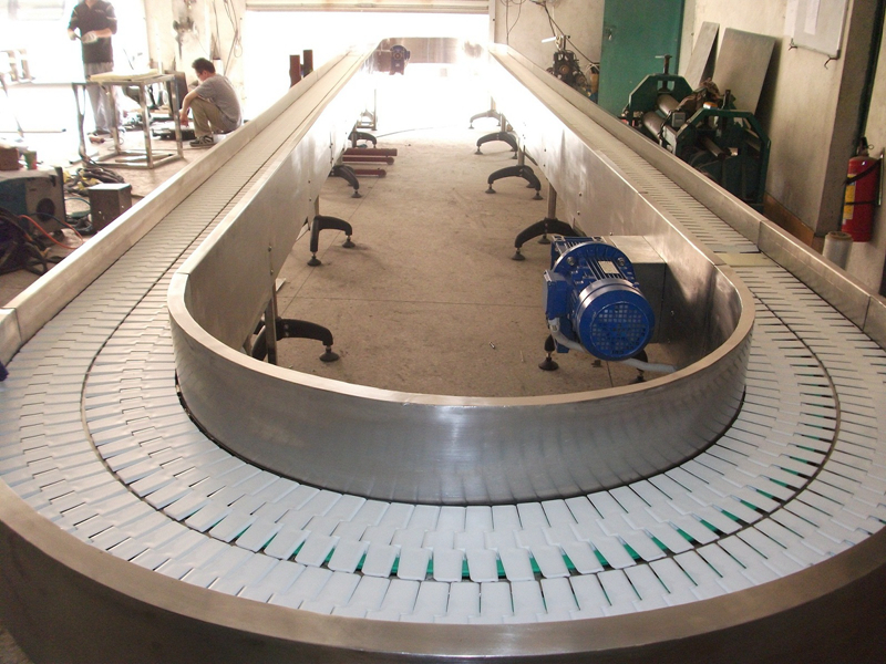 (3)一般要求輸送機(jī)空機(jī)開動(dòng),以免電機(jī)超負(fù)荷及不銹鋼鏈板打滑;停機(jī)前,除特殊情況外,應(yīng)將不銹鋼鏈板上的物料全部卸完。